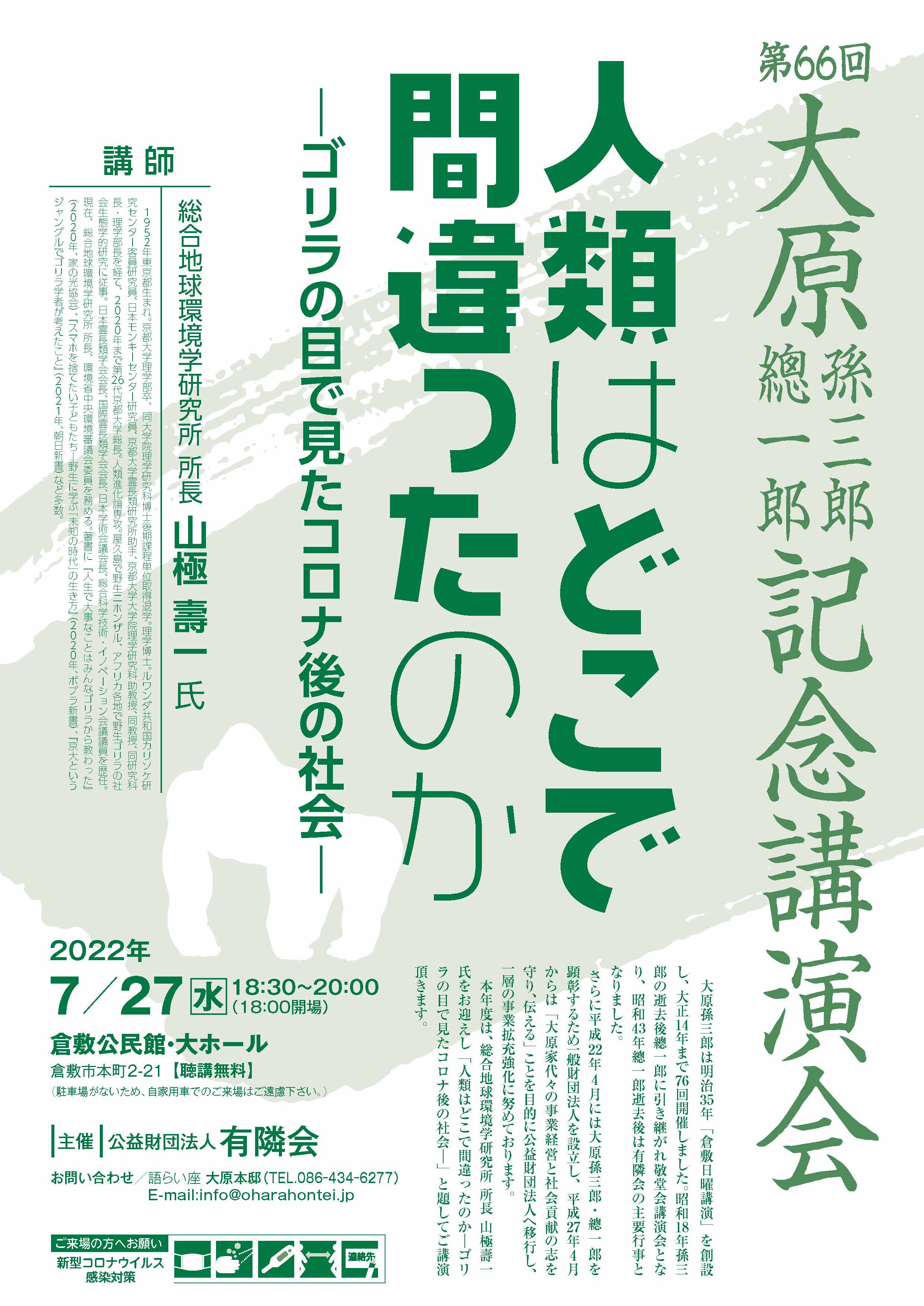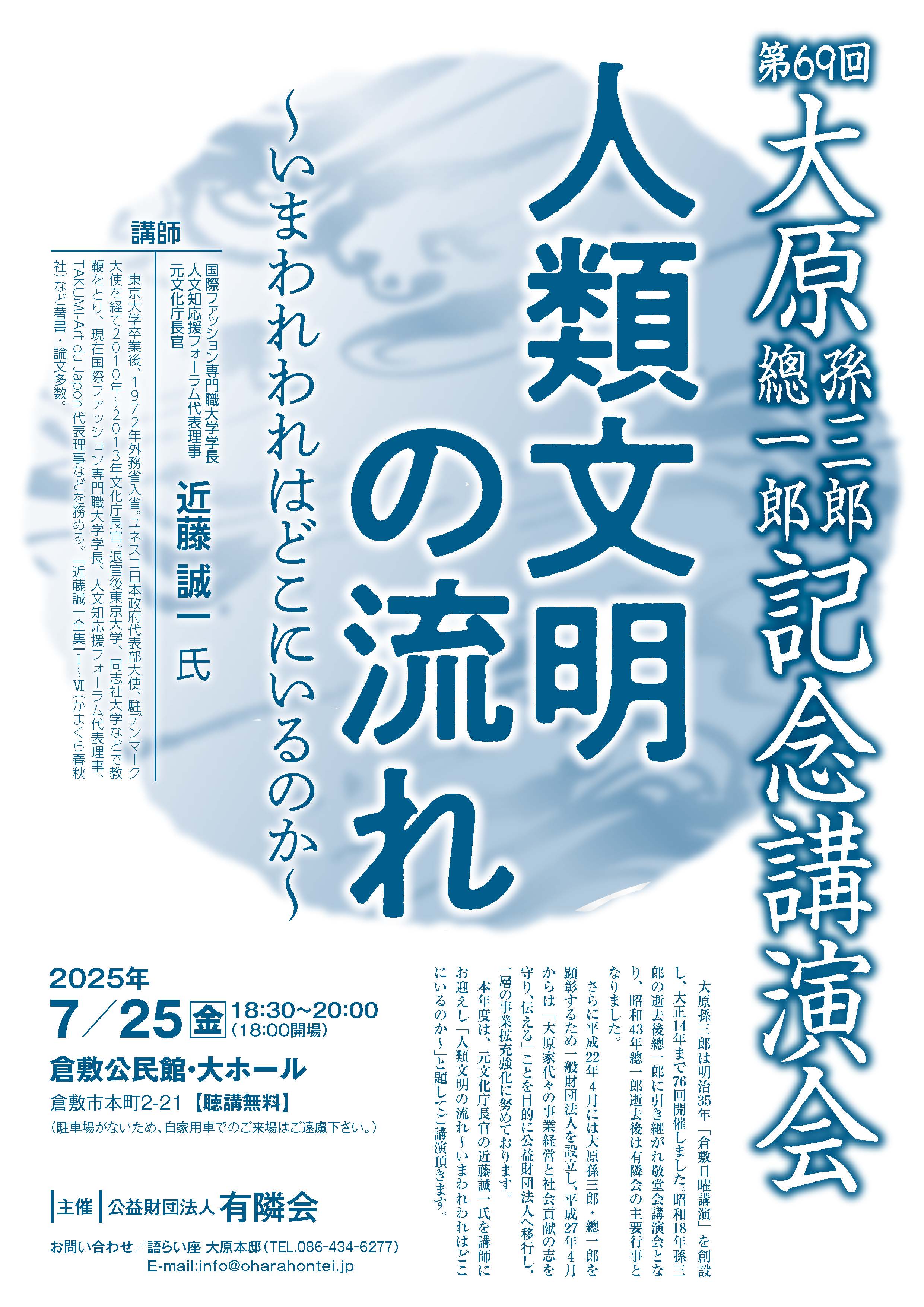 第69回 大原孫三郎・總一郎記念講演会※本年度の講演会は終了いたしました